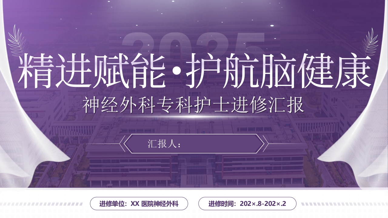 首页医路成长进修汇报护士进修汇报PPT模板【紫色】
