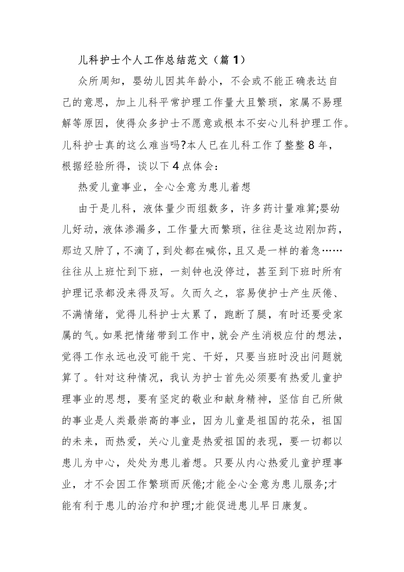 儿科护士个人工作总结范文(16篇)
