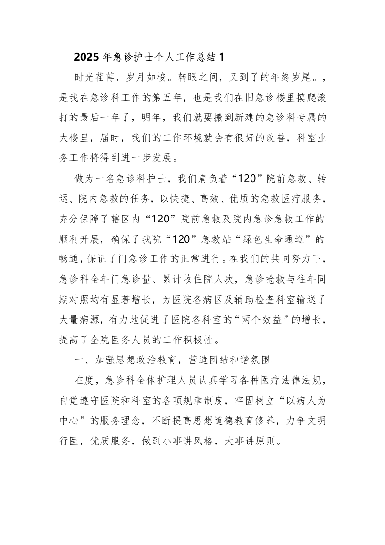 急诊护士个人工作总结(5篇)