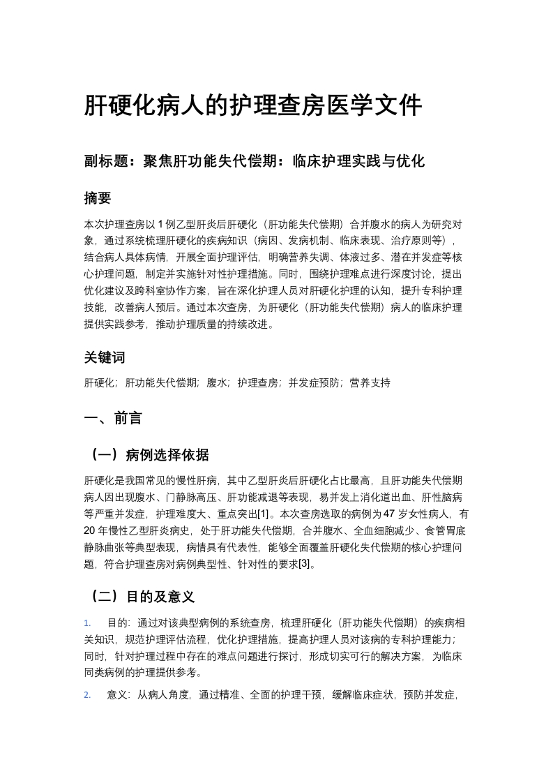 肝硬化病人的护理