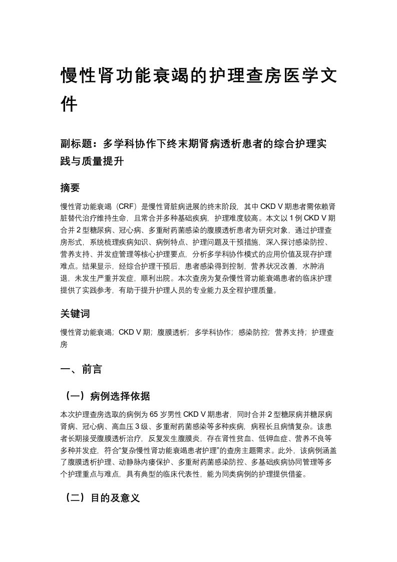 慢性肾功能衰竭的护理