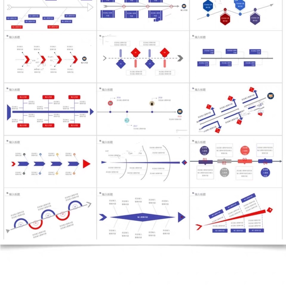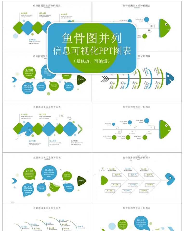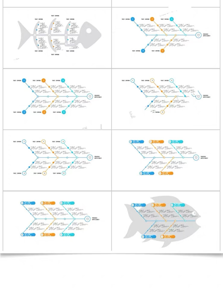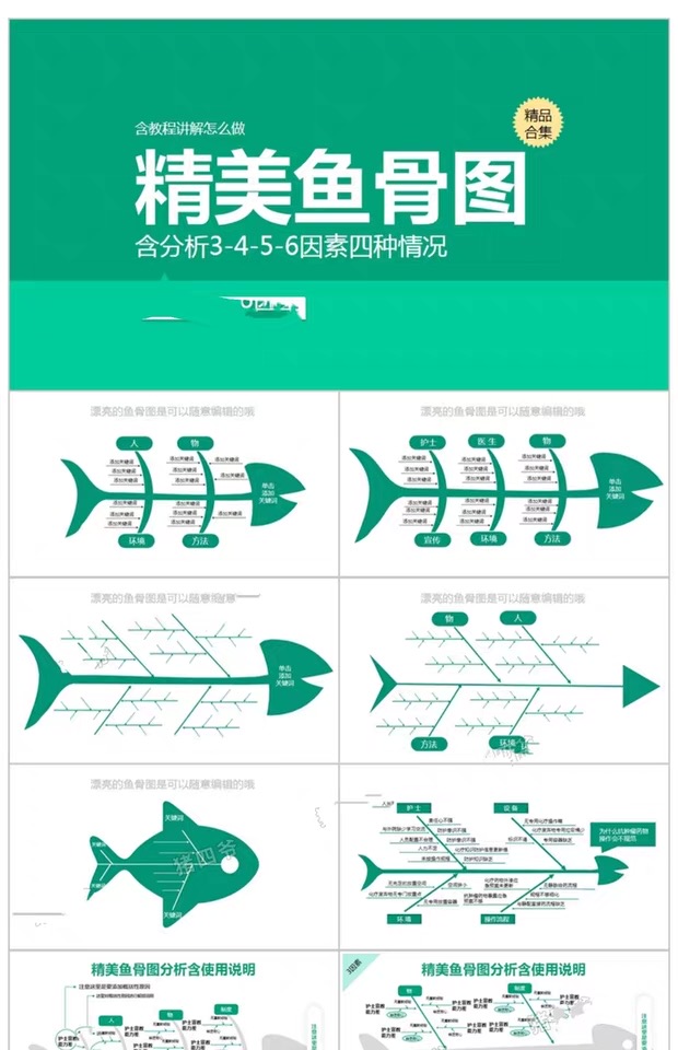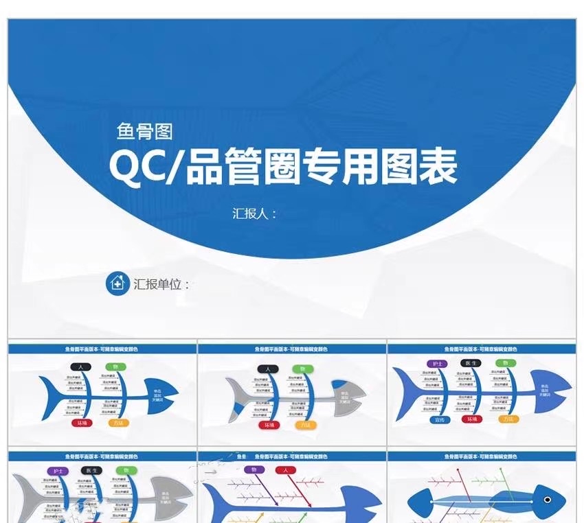 鱼骨图PPT模板qc品管圈医疗院创意扁平化图表分析形信息可视流程